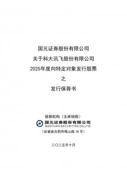 [投资者关系]002230_2025-10-18-科大讯飞-国元证券股份有限公司关于公司2025年度向特定对象发行股票之发行保荐书(银创产业通www.chanyetong.net)