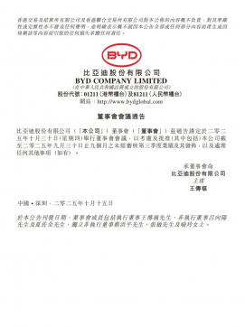 [投资者关系]002594_2025-10-16-比亚迪-H股公告(董事会会议通告)(银创产业通www.chanyetong.net)