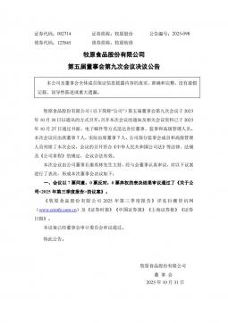 [投资者关系]002714_2025-10-31-牧原股份-第五届董事会第九次会议决议公告(银创产业通www.chanyetong.net)