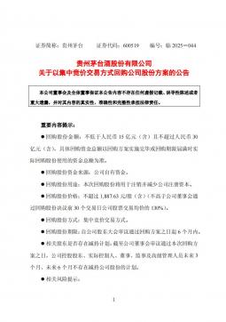 [投资者关系]600519_2025-11-06-贵州茅台-贵州茅台关于以集中竞价交易方式回购公司股份方案的公告(银创产业通www.chanyetong.net)