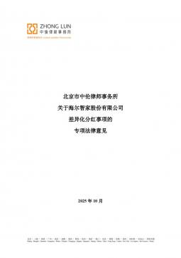 [投资者关系]600690_2025-11-01-海尔智家-北京市中伦律师事务所关于海尔智家股份有限公司差异化分红事项之专项法律意见书(银创产业通www.chanyetong.net)