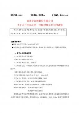 [投资者关系]600519_2025-11-06-贵州茅台-贵州茅台关于召开2025年第一次临时股东大会的通知(银创产业通www.chanyetong.net)