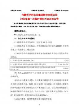 [投资者关系]600887_2025-11-29-伊利股份-内蒙古伊利实业集团股份有限公司2025年第一次临时股东大会决议公告(银创产业通www.chanyetong.net)