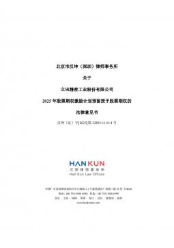 [投资者关系]002475_2025-11-24-立讯精密-北京市汉坤(深圳)律师事务所关于立讯精密工业股份有限公司2025年股票期权激励计划预留授予相关事项的法律意见书(银创产业通www.chanyetong.net)