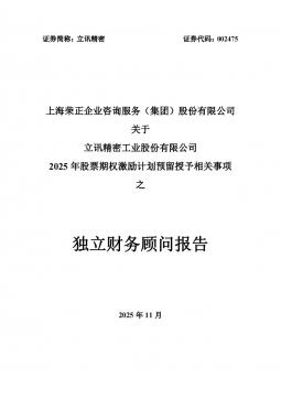 [投资者关系]002475_2025-11-24-立讯精密-上海荣正企业咨询服务(集团)股份有限公司关于立讯精密工业股份有限公司2025年股票期权激励计划预留授予相关事项之独立财务顾问报告(银创产业通www.chanyetong.net)