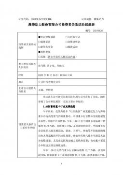 [投资者关系]000338_2025-11-26-潍柴动力-2025年11月26日投资者关系活动记录表(银创产业通www.chanyetong.net)