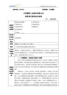 [投资者关系]002475_2025-11-26-立讯精密-2025年11月20日-26日投资者关系活动记录表(银创产业通www.chanyetong.net)