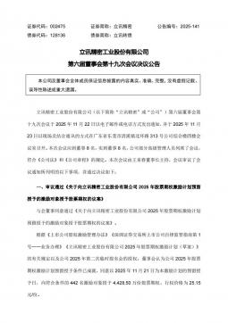 [投资者关系]002475_2025-11-24-立讯精密-第六届董事会第十九次会议决议公告(银创产业通www.chanyetong.net)
