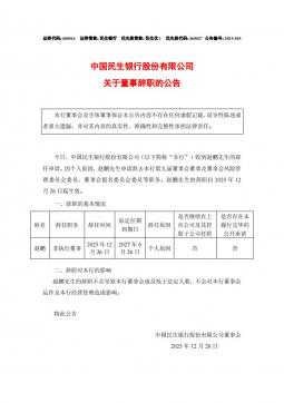 [投资者关系]600016_2025-12-27-民生银行-中国民生银行关于董事辞职的公告(银创产业通www.chanyetong.net)