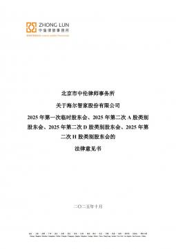 [投资者关系]600690_2025-10-17-海尔智家-北京市中伦律师事务所关于海尔智家股份有限公司2025年第一次临时股东会、2025年第二次A股类别股东会、2025年第二次D股类别股东会、2025年第二次H股类别股东会的法律意见书(银创产业通www.chanyetong.net)