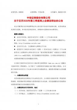 [投资者关系]600030_2025-10-18-中信证券-中信证券股份有限公司关于召开2025年第三季度网上业绩说明会的公告(银创产业通www.chanyetong.net)