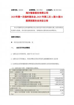 [投资者关系]600690_2025-10-17-海尔智家-海尔智家股份有限公司2025年第一次临时股东会、2025年第二次A股D股H股类别股东会决议公告(银创产业通www.chanyetong.net)