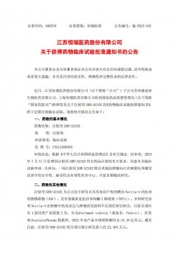 [投资者关系]600276_2025-10-14-恒瑞医药-恒瑞医药关于获得药物临床试验批准通知书的公告(银创产业通www.chanyetong.net)