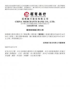 [投资者关系]600036_2025-10-18-招商银行-[H股公告]招商银行股份有限公司董事会会议召开日期(银创产业通www.chanyetong.net)