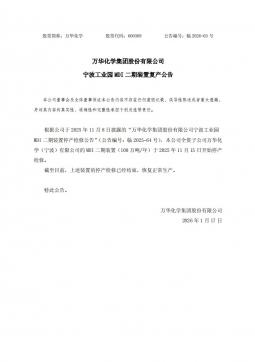 [投资者关系]600309_2026-01-17-万华化学-万华化学宁波工业园MDI二期装置复产公告(银创产业通www.chanyetong.net)