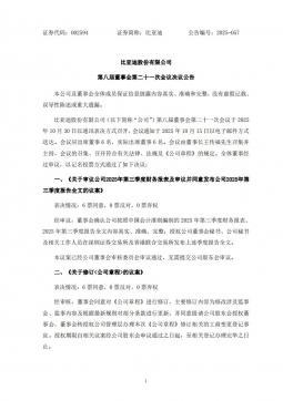 [投资者关系]002594_2025-10-31-比亚迪-第八届董事会第二十一次会议决议公告(银创产业通www.chanyetong.net)