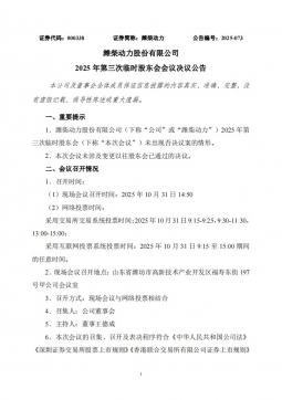 [投资者关系]000338_2025-11-01-潍柴动力-潍柴动力股份有限公司2025年第三次临时股东会会议决议公告(银创产业通www.chanyetong.net)