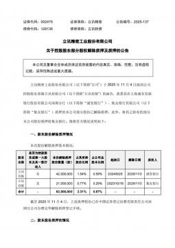 [投资者关系]002475_2025-11-05-立讯精密-关于控股股东部分股权解除质押及质押的公告(银创产业通www.chanyetong.net)