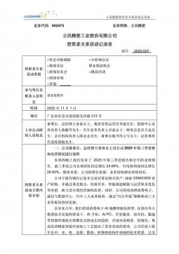 [投资者关系]002475_2025-11-03-立讯精密-2025年11月1日投资者关系活动记录表(银创产业通www.chanyetong.net)