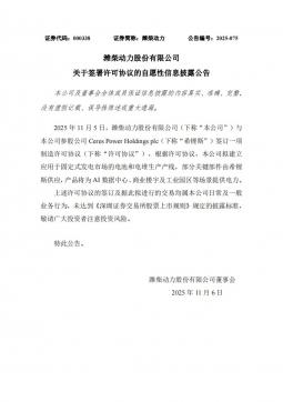 [投资者关系]000338_2025-11-07-潍柴动力-潍柴动力股份有限公司关于签署许可协议的自愿性信息披露公告(银创产业通www.chanyetong.net)