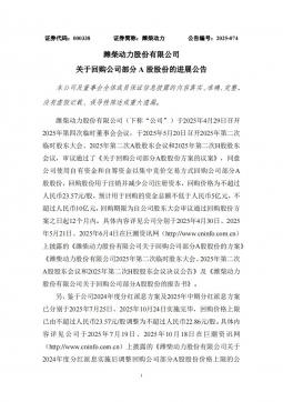 [投资者关系]000338_2025-11-04-潍柴动力-潍柴动力股份有限公司关于回购公司部分A股股份的进展公告(银创产业通www.chanyetong.net)