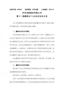 [投资者关系]000568_2025-11-06-泸州老窖-第十一届董事会十七次会议决议公告(银创产业通www.chanyetong.net)