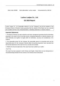 [投资者关系]000568_2025-11-06-泸州老窖-2025年第三季度报告(英文)(银创产业通www.chanyetong.net)