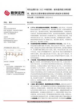 [金属]2022-09-14-首创证券-有色金属行业2022中报回顾:板块盈利能力再创新高,建议关注需求爆发在即的镁与高成本支撑的铝-34页(银创产业通www.chanyetong.net)