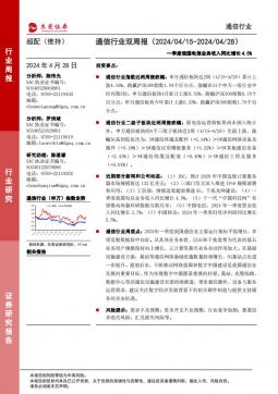 [通信]2024-04-28-东莞证券-通信行业双周报:一季度我国电信业务收入同比增长4.5%-11页(银创产业通www.chanyetong.net)