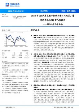 [汽车零部件]2024-09-05-国海证券-汽车2024年中报总结:2024年Q2汽车主要子板块业绩环比改善,看好汽车板块Q3景气度提升-21页(银创产业通www.chanyetong.net)(银创产业通www.chanyetong.net)
