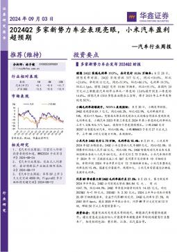 [汽车零部件]2024-09-03-华鑫证券-汽车行业周报:2024Q2多家新势力车企表现亮眼,小米汽车盈利超预期-15页(银创产业通www.chanyetong.net)(银创产业通www.chanyetong.net)