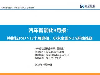 [汽车零部件]2024-10-10-东吴证券-汽车智能化9月报:特斯拉FSD V13十月亮相,小米全国NOA开始推送-31页(银创产业通www.chanyetong.net)