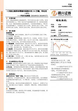 [汽车零部件]2024-10-09-甬兴证券-汽车行业周报:9月狭义乘用车零售市场预计约210万辆,环比约+10%-12页(银创产业通www.chanyetong.net)