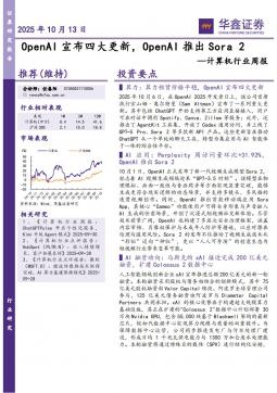 [互联网]2025-10-13-华鑫证券-计算机行业周报:OpenAI宣布四大更新,OpenAI推出Sora 2-19页(银创产业通www.chanyetong.net)