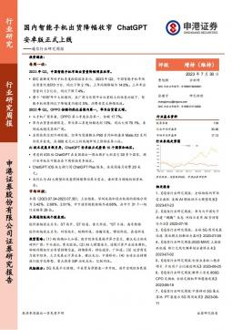 [消费电子]2023-07-31-申港证券-通信行业研究周报:国内智能手机出货降幅收窄 ChatGPT安卓版正式上线-10页(银创产业通www.chanyetong.net)