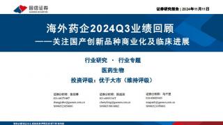 [生物医药]2024-11-11-国信证券-海外药企2024Q3业绩回顾:关注国产创新品种商业化及临床进展-31页(银创产业通www.chanyetong.net)