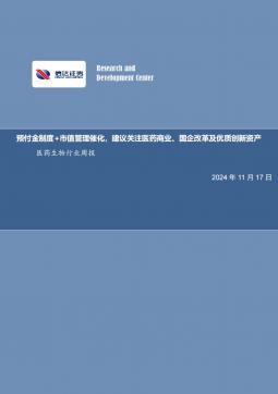 [生物医药]2024-11-18-国都证券-医药生物行业周报:医保基金预付制度发布,医疗设备更新招投标提速-7页(银创产业通www.chanyetong.net)