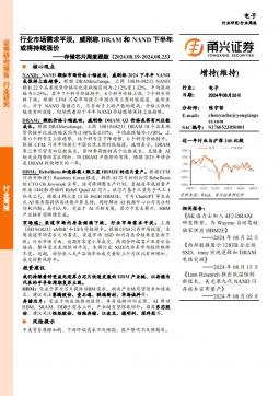 [半导体]2024-08-27-甬兴证券-存储芯片行业周度跟踪:行业市场需求平淡,威刚称DRAM和NAND下半年或将持续涨价-9页(银创产业通www.chanyetong.net)