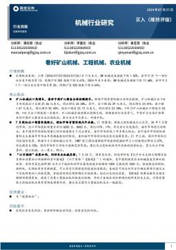 [工程机械]2024-07-28-国金证券-机械行业研究周报:看好矿山机械、工程机械、农业机械-16页(银创产业通www.chanyetong.net)(银创产业通www.chanyetong.net)