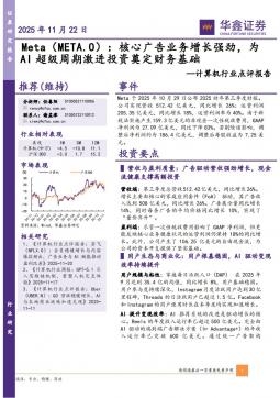 [互联网]2025-11-23-华鑫证券-计算机行业点评报告:Meta:核心广告业务增长强劲,为AI超级周期激进投资奠定财务基础-5页(银创产业通www.chanyetong.net)