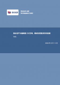 [金属]2024-08-11-信达证券-钢铁行业周报:铁水日产大幅降至232万吨,钢材短期需求表现较差-18页(银创产业通www.chanyetong.net)