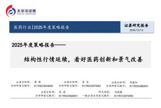 [医药]2024-12-13-太平洋-医药行业2025年度策略报告:结构性行情延续,看好医药创新和景气改善-62页(银创产业通www.chanyetong.net)