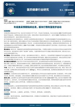 [医药]2024-12-16-国金证券-医药健康行业研究:年底集采预期陆续出清,板块行情有望逐步启动-15页(银创产业通www.chanyetong.net)