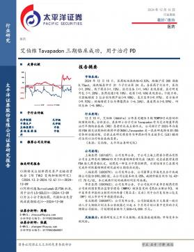 [医药]2024-12-11-太平洋-医药行业周报:艾伯维Tavapadon三期临床成功,用于治疗PD-3页(银创产业通www.chanyetong.net)
