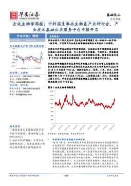 [生物医药]2024-10-21-华安证券-合成生物学周报:中科国生举办生物基产业研讨会,产业技术基础公共服务平台申报开启-18页(银创产业通www.chanyetong.net)(银创产业通www.chanyetong.net)