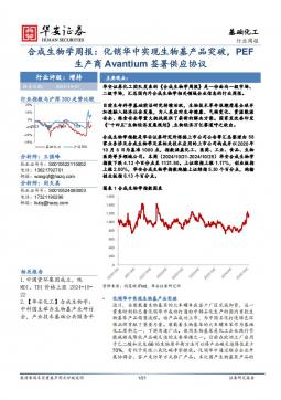 [生物医药]2024-10-27-华安证券-合成生物学周报:化销华中实现生物基产品突破,PEF生产商Avantium签署供应协议-21页(银创产业通www.chanyetong.net)(银创产业通www.chanyetong.net)