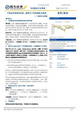 [通信]2024-08-12-国元证券-通信行业周报:千帆组网星顺利发射,数据中心间连接需求高增-7页(银创产业通www.chanyetong.net)(银创产业通www.chanyetong.net)
