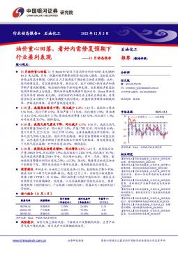 [化工]2022-12-05-中国银河-石油化工11月动态报告:油价重心回落,看好内需修复预期下行业盈利表现-25页(银创产业通www.chanyetong.net)