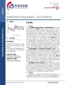 [医药]2025-05-08-太平洋-医药行业深度研究:原料药板块Q1利润同比快速增长,关注行业供需改善-27页(银创产业通www.chanyetong.net)