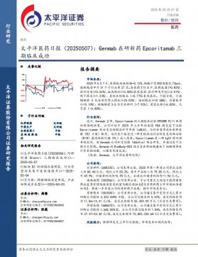 [医药]2025-05-08-太平洋-医药日报:Genmab在研新药Epcoritamab三期临床成功-3页(银创产业通www.chanyetong.net)
